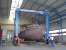 Die Müritz-Ewer 1390 OC wurde Anfang April 2006 in der Werft der Barther Yacht-Service GmbH auf Kiel gelegt.